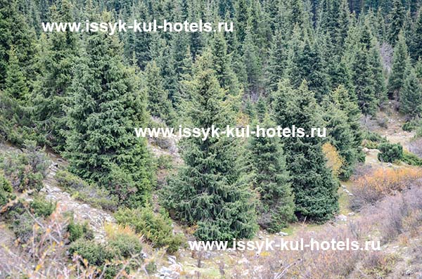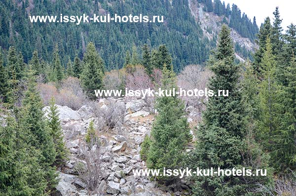 Вниманию экскурсантов богатейшая природа здешних мест. Склоны ущелья покрыты вековыми елями. Еловый лес встречает путешественника сразу от начала долины. По левым склонам ущелья царствуют заросли кустарников, среди которых жимолость, смородина, облепиха, барбарис, шиповник.