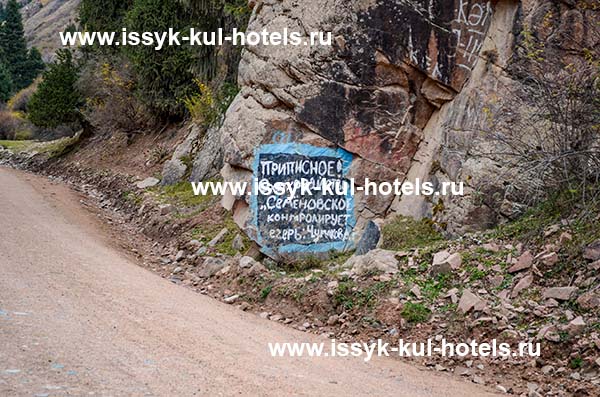В сорока километрах от Чолпон-Аты по дороге на Бишкек близ села Семеновка на северном берегу Иссык-Куля лежит природный памятник – Семеновское ущелье. Названное по фамилии исследователя и географа Семенова-Тянь-Шанского это красивейшее место Прииссыккулья притягивает к себе внимание многочисленных туристов. Среди них и гости здравницы «Голубой Иссык-Куль».