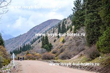 Протяженность ущелья, по которому протекает бурная горная речка Ак-Суу, 30 километров. До села Семеновка вглубь горных хребтов Кунгей Ала-Тоо существует асфальтированная дорога. Она лежит от Чолпон-Аты вдоль берегов Иссык-Куля в сторону Каракола. От села дорожное покрытие прекращается и трасса, уходящая резко в горы, превращается в проселочную дорогу. Но поверьте, что полученные впечатления от общения с местной природой и национальным колоритом киргизов с лихвой окупят дорожные неудобства.